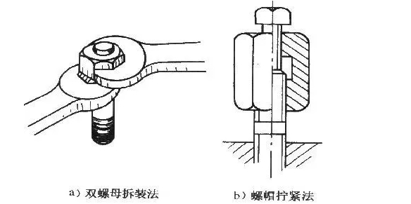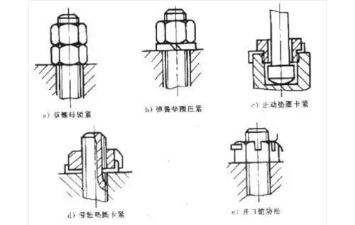 此外,阀门用来防松的方法有骑缝螺钉(骑马螺钉)固定法和点铆法,这两种方法都用在不常拆卸的场合。点铆法是将螺母与螺栓啮合的螺纹处用洋冲点铆两点或两点以上的位置,使螺纹处相互挤压变形达到防松的目的。如果螺母松动用以上方法难以解决,可用粘接法。